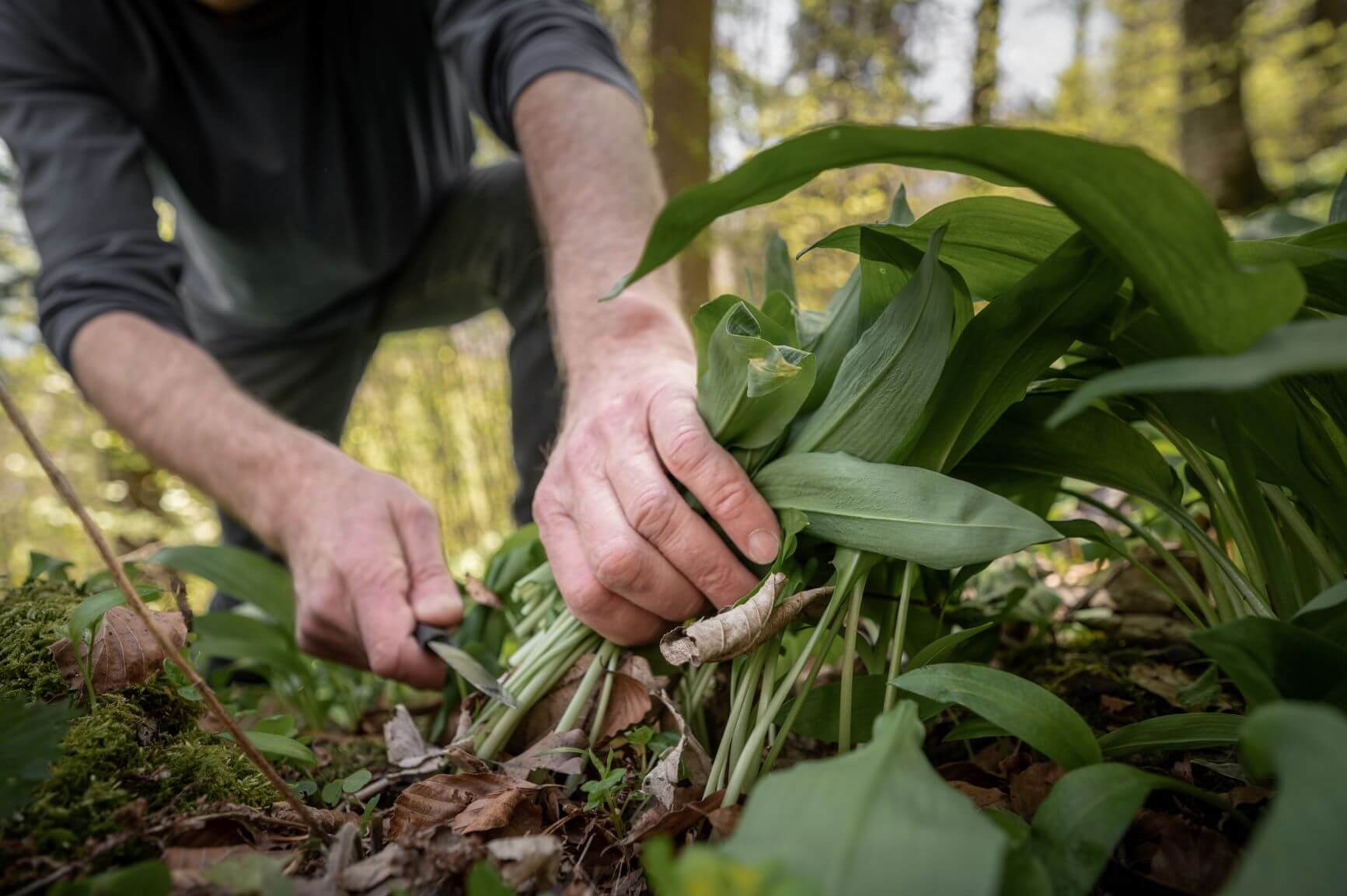 Im Frühjahr sammeln wir in Bioland zertifizierter Wildsammlung frischen Bärlauch in heimischen Wäldern und Mittelgebirgslagen.